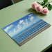 Step out onto a classic veranda with this uplifting wallpaper, featuring a symmetrical view of the sea framed by elegant white railings and curtains. The focus is on the brilliant blue sky filled with fluffy white clouds, creating a cheerful and airy atmosphere. The crisp details of the architecture and the vibrant colors of the ocean create a realistic window effect. This illustration evokes a sense of clarity, optimism, and fresh sea air, perfect for brightening up kitchens, hallways, or living areas.