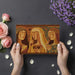 Transform your wall into an ancient masterpiece with this mosaic-style mural. Depicting three women in traditional attire, the earthy ochre and teal tones provide a warm, sophisticated look. Ideal for cafe, dining areas, or cultural spaces looking to capture the timeless beauty of Greek and Roman art.