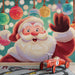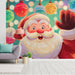 Close-Up Cartoon Santa Portrait Mural Wallpaper | Cheerful Expression, Bokeh Lights, Playful Art