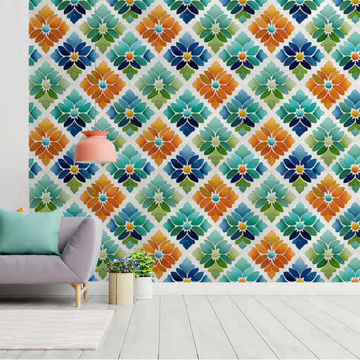 Colorful Mosaic Tiles Texture Mural Wallpaper | Abstract Geometric Art — Vivawalls Store Skip to content