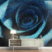 The Deep Blue Rose Oil Painting Mural Wallpaper is a powerful, moody, and highly textural artwork. It captures an extreme close-up of a rose, with its center rendered in deep, swirling blues and contrasting bright aqua/white highlights. The thick, visible impasto brushstrokes emphasize the density and velvety texture of the petals, creating a dramatic, expressionistic floral portrait. This mural is ideal for a bedroom, a sophisticated lounge, or a space where deep color and intense texture are desired.