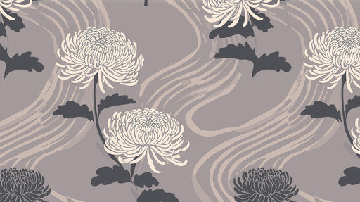 · Elevate your home with this sophisticated pattern of delicate silver chrysanthemums and fine swirling vines on a warm beige background. This timeless design offers a subtle, high-end feel for master bedrooms or formal dining room. Custom-sized for a seamless fit in Peel and Stick or Premium Non-Woven. Custom designs are also accepted for production.