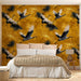 Dynamic Ink Wash Cranes Mural Wallpaper | Abstract Gold Texture, Flight Pattern, High-Contrast Motion