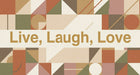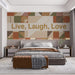 Earthy Live Laugh Love Geometric Quote Wall Mural Custom Size, Peel and Stick or Non-Woven, Warm Typography Wallpaper for Living Room or Bedroom