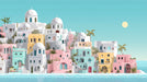 Ethereal Light Mediterranean Village Mural Wallpaper | Pastel White So — Vivawalls Store Skip to content