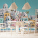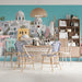 The Ethereal Light Mediterranean Village Mural Wallpaper is a serene and airy artwork. It features minimalist buildings in white and pale pastels under a clear, soft turquoise sky, giving the impression of a peaceful coastal morning. The clean lines and gentle colors create a spacious and tranquil atmosphere. This mural is ideal for a dining room, a peaceful bedroom, or a chic, minimalist living area.