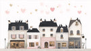 French Boutique Row Mural Wallpaper | Cats on Roof, Black and White, Romantic Heart Accents