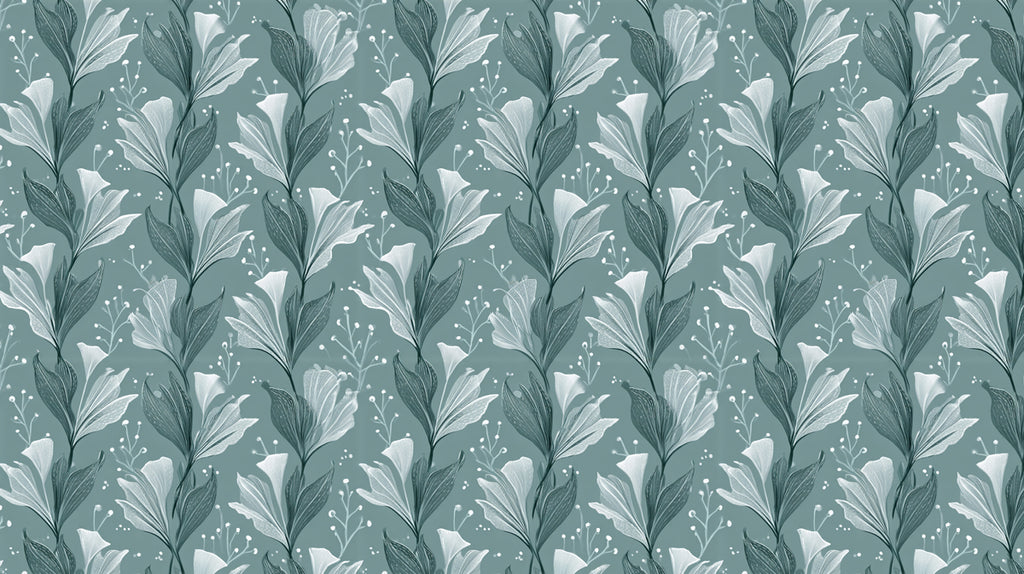 The Grayscale Floral Vines Mural Wallpaper is an elegant and contemporary piece of art. The design features a sophisticated, repeating vertical pattern of stylized two-tone floral blooms and delicate berry sprigs in a moody palette of deep teal and cool gray. The painterly shading and vertical orientation create an impression of graceful growth and modern sophistication. This mural is an ideal choice for a chic dining room, an elegant entryway, or a modern bedroom that seeks a dramatic, artistic backdrop.
