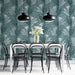 Grayscale Floral Vines Mural Wallpaper | Deep Teal and Gray