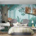 Create a world of smiles for your little ones. This charming, soft-toned mural features friendly forest animals—including a koala, red panda, and squirrels—around a smiling tree. With its gentle blue-green palette and adorable characters, it’s the perfect backdrop for a nursery or playroom, designed to inspire happiness and gentle exploration.