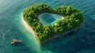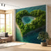 Heart-Shaped Lagoon Island Mural Wallpaper | Inner Lake, Lush Greenery, Exotic Tropical Escape