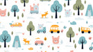 Kawaii Car & Animal Doodle Pattern | Pastel, Forest Theme, Lighthearted Repeat