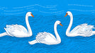 Embrace the charm of handcrafted art with this unique wallpaper, featuring swans swimming in textured blue water. The illustration style mimics a linocut or woodblock print, using dashed lines and stippling dots to create shading and movement. The wavy lines of the water and the textured bodies of the swans give the design a rustic, folk-art feel. This illustration captures the warmth of traditional printmaking and the rhythmic beauty of water, perfect for creating a cozy, artistic atmosphere in restaurant, cottages, or dining rooms.