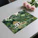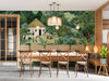 Celebrate the vibrancy of nature and community. This beautifully detailed illustration depicts a traditional thatched cottage nestled deep within a lush, green jungle, surrounded by families going about their daily lives. The rich shades of emerald, forest green, and earthy tones bring a warm, organic, and storytelling vibe to any dining room or restaurant.