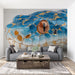 The Luxury Blue Snake Skin Mural Wallpaper is a striking and opulent artwork. It features a close-up of a blue snake with intricate scales, heavily accented with textured gold leaf fragments. The combination of vibrant blue, glowing gold, and deep shadows creates a high-fashion, dramatic aesthetic. This mural is ideal for a bold statement wall in a lounge, a sophisticated living room, or a high-end commercial space.