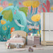 Magical Forest Elephant Illustration Mural Wallpaper | Pastel Hues, Oversized Flora, Ethereal Kids' Art