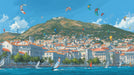 Mediterranean Coastal Town Mural Wallpaper | Hillside Village, Tile Roofs, Colorful Kite Scene