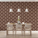 The Micro Diamond Kilim Repeat Mural Wallpaper is a dense, finely detailed, and warm repeating print. It features an intricate, small-scale pattern of interlocking diamonds and star-like motifs, rendered in varying shades of dark brown and light beige. The precision and high density evoke the traditional hand-woven texture of a Kilim rug or tapestry, creating a sophisticated and earthy backdrop. This mural is ideal for a cozy dining room, a rustic bedroom, or a lounge area that favors rich texture and subtle pattern.