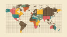 Mid-Century Grid World Map Mural Wallpaper | Retro Color Blocks, Cartesian Grid, Minimalist Cartography