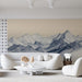 Minimalist Line Art Mountain Range Mural Wallpaper | Beige and Blue Landscape