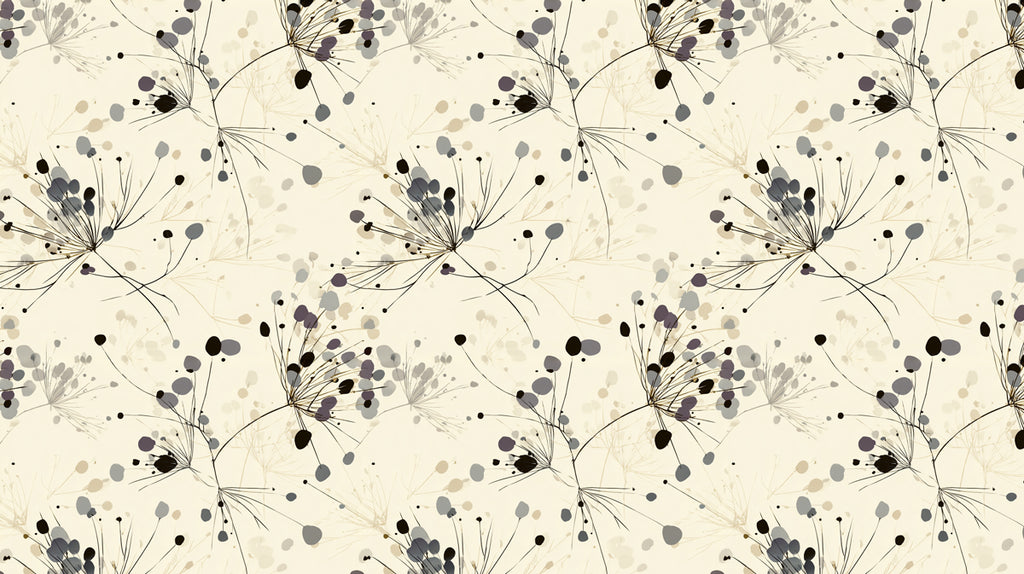 Modern Dandelion Seed Head Wallpaper | Abstract, Off-White, Dark Ink Splatters