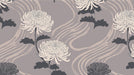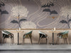 · This wallpaper features oversized white chrysanthemums set against a fluid, wavy background, creating a calm and artistic ambiance. The clean silhouettes and rhythmic lines evoke a sense of modern Zen, offering a harmonious blend of crisp white, soft taupe, and charcoal grey hues. Perfect for contemporary entryway and serene cafe, this design adds a sophisticated and organic touch to any room. It can also fit into Japandi-style spaces with its minimalist floral motifs. The dominant colors include bright white and muted taupe, which pair well with light oak furniture, linen textiles, and matte black or silver accents. For a similar style, explore our wallpapers "Zen Blooms" and "Floating Petals".