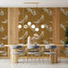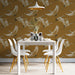 The Monochromatic Ochre Cranes Mural Wallpaper is a warm and rhythmic repeating print. The design features numerous stylized cranes in flight, rendered in a near-monochromatic palette of ochre and tan against a solid, matte mustard-ochre background. The simplicity of the color scheme and the graceful, repetitive motion of the birds create a serene yet sophisticated atmosphere. This mural is ideal for a spa-like dining room, a serene yoga studio, or a living room with an earthy, minimalist aesthetic.