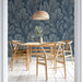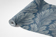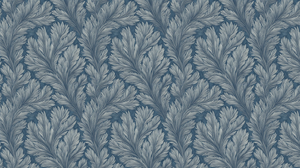 The Moody Fern Frond Mural Wallpaper is a dramatic and luxurious piece of art. The design features a dense, large-scale repeating pattern of swirling, feathery fern fronds in a striking, high-contrast palette of deep indigo blue and dusty, light gray-blue. The layered, hand-drawn texture gives the pattern a rich, almost velvet-like appearance, creating a sense of depth and old-world elegance. This mural is an ideal choice for a sophisticated dining room, a moody library, or a master bedroom seeking a bold, artistic focal point.