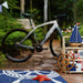 The Mountain Bike Trail Oil Painting Mural Wallpaper is a rustic, textured oil painting. It captures a modern mountain bike leaning against a tree near a rocky path in a dense forest, rendered with thick, visible brushstrokes in shades of deep forest green and brown. The heavy texture emphasizes the rugged, natural environment and the tactile feel of the trail. This mural is ideal for a nursery, a mountain biking enthusiast's room, or a bedroom seeking a natural, rustic, and textured focus.