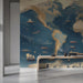 Nautical Exploration World Map Mural Wallpaper | Ocean Shipping Routes, Ship Illustration, Vintage Map Style