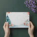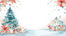 The Poinsettia and Teal Tree Corner Mural Wallpaper is a bright, airy watercolor design with a large amount of white background, creating a floating vignette effect. The lower corners feature a teal-blue Christmas tree, candles, and blush-toned poinsettias, all rendered with soft watercolor edges. The clean white space emphasizes the lightness and delicacy of the artwork. This mural is ideal for a minimalist room, a bright nursery, or a space that needs a subtle yet artistic festive accent.