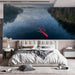 The Red Kayak Forest River Mural Wallpaper is an atmospheric and textural artwork. It captures an aerial view of a lone red kayak navigating a dark, misty river, surrounded by banks of abstracted forest rendered in deep, cool blues, greens, and grays. The thick, visible brushstrokes create a sense of cold, raw nature and contemplative solitude. The bright red kayak provides the sole pop of vivid color and energy. This mural is ideal for a modern living room, a bedroom, or a space where themes of natural adventure and tranquility are desired.