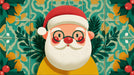 The Santa Face and Portuguese Tile Mural Wallpaper is a whimsical, fusion artwork. A large, stylized cartoon Santa face, wearing glasses, is centered over a repeating background pattern of geometric floral and holly-like tiles in vibrant teal, yellow-orange, and red. The combination of the clean-lined Santa and the intricate, colorful tile pattern creates a fun, quirky, and highly decorative holiday look. This mural is ideal for a kitchen backsplash, a cozy bar area, or a space where a unique, global-inspired holiday theme is desired.