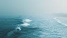 Serene Foggy Beach Waves Mural Wallpaper | Cool Teal Hues, Repetitive Motion, Minimalist Coastal Scene