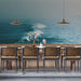 The Serene Foggy Beach Waves Mural Wallpaper is a tranquil and calming artwork. It captures the rhythmic, rolling motion of ocean waves gently breaking near a hazy shoreline. The cool, monochromatic palette of soft teal and gray conveys a sense of stillness, peace, and isolation, typical of a foggy morning at the beach. The composition is clean, with minimal distractions, focusing purely on the subtle texture and color of the sea. This mural is ideal for a dining room, a quiet office, or a space where relaxation and soft color are paramount.