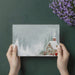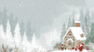 The Snowy Cabin and Elves Illustration Mural Wallpaper offers a wide, atmospheric vista of a winter forest and a cozy cabin. The scene is dominated by cool, soft mint green and gray tones, with snow-dusted evergreen trees receding into the foggy background. A small, cozy cabin with a brick chimney and a few playful figures (elves and Santa) stands in the foreground. The high level of negative space and soft colors create a peaceful, tranquil, and slightly whimsical holiday setting. This mural is ideal for a bedroom, a calming nursery, or a modern Nordic-style living space.