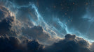 The Sunlit Nebula Clouds Mural Wallpaper presents a dramatic cosmic scene where a warm, unseen light source illuminates vast cosmic clouds. The foreground clouds are shadowed and dark (indigo/charcoal), but their edges are highlighted by an intense, fiery golden-orange glow. Behind them, bright streaks of electric blue light up the distant nebula. This powerful contrast between warm light and cool shadow creates a highly dynamic and energetic aesthetic. This mural is ideal for a living room or a commercial space that requires high drama and a sophisticated mix of color temperatures.