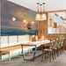Sunset Seascape Sailing Mural Wallpaper | Oil Painting, Misty Mountains, Warm and Cool Tones