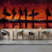 Surfer Silhouettes Sunset Mural Wallpaper | Fiery Red and Orange, Refl — Vivawalls Store Skip to content