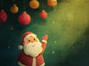 The Textured Santa Vignette Mural Wallpaper is a stylized, simple depiction of Santa against a moody, textural background. Santa is shown with a friendly, subtle expression, waving beneath simple, hanging yellow and red ornaments. The backdrop is a blend of deep green and muted gold with a soft, brushed texture, creating an atmospheric, warm, and comforting night scene. The focus on texture and simple shapes gives the mural a folk-art feel. This mural is ideal for a small accent wall, a cozy kitchen, or a bedroom.