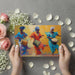 The Vibrant African Dancers Palette Knife Oil Painting Mural Wallpaper captures the joy and movement of three African women dancing and playing drums. The artwork uses a heavy impasto technique with a palette knife, creating rich texture and bold strokes of orange, yellow, and blue. This energetic mural is a celebration of culture and rhythm.