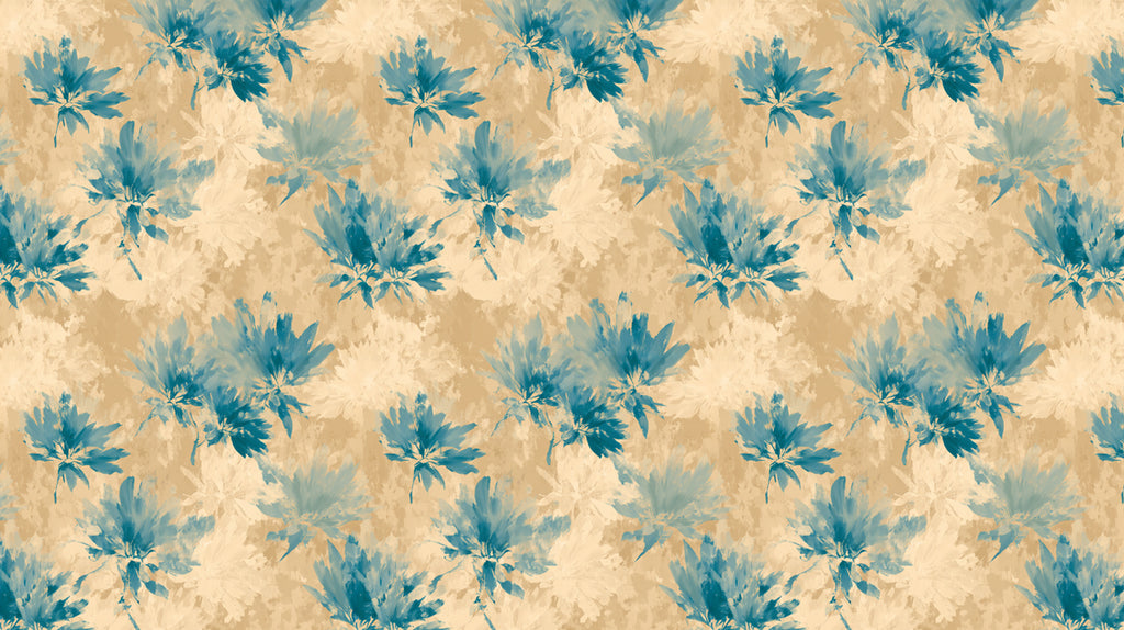 The Vibrant Floral Mural Wallpaper is a bold and energetic piece of art. The design features a repeating pattern of vibrant, abstract floral shapes in a high-contrast palette of cool blues and warm beiges. The painterly texture and expressive colors create a powerful statement on any wall, bringing a sense of lively energy and modern artistry to your space. This mural is an ideal choice for a modern living room, a stylish dining area, or a creative studio that seeks a unique, artistic focal point.