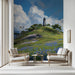 Vibrant Lighthouse Hill Wallpaper, Impasto Wildflower Wall Mural, Serene Coastal Nature Decor