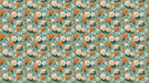 The Vintage Teal and Orange Peony Repeat Pattern Mural Wallpaper features a dense, repeating pattern of orange and cream peonies on a teal background. The vintage botanical style creates a charming and nostalgic aesthetic. This mural is ideal for adding a touch of retro elegance to a restaurant, kitchen, or dining room.
