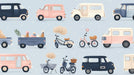 Vintage Van & Scooter Pattern | Pastel Tones, Retro Transport, Blue & Pink Motif