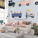 Vivawalls.com’s Tips: Pair the mural with light wood or white furniture to emphasize the pastel palette. Use minimalist shelving to display small, vintage-style toys or model vehicles that match the theme.