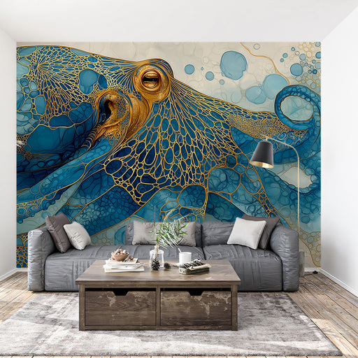 The style is whimsical and child-friendly, with a focus on ocean life and adventure. This wallpaper would be perfect for a child's bedroom or playroom, as it can bring a sense of wonder and creativity to the space. It could also work well in a themed party room or a classroom to add a fun and educational element.
